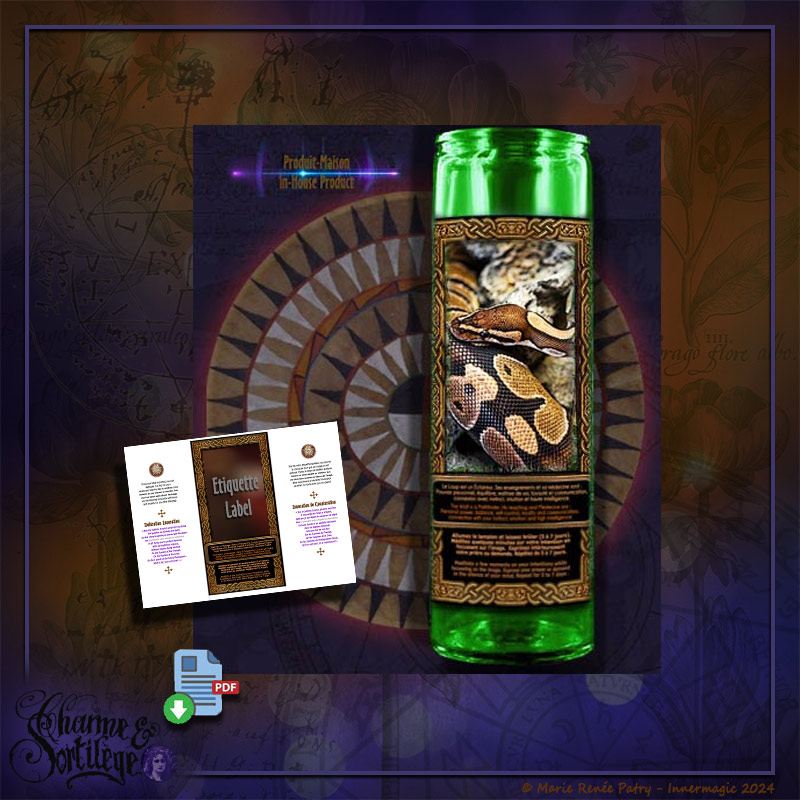 Un document PDF à imprimer sur étiquette collante pour vos lampions Votives ou bouteilles de sorcière . Usage et info en Français & Anglais.